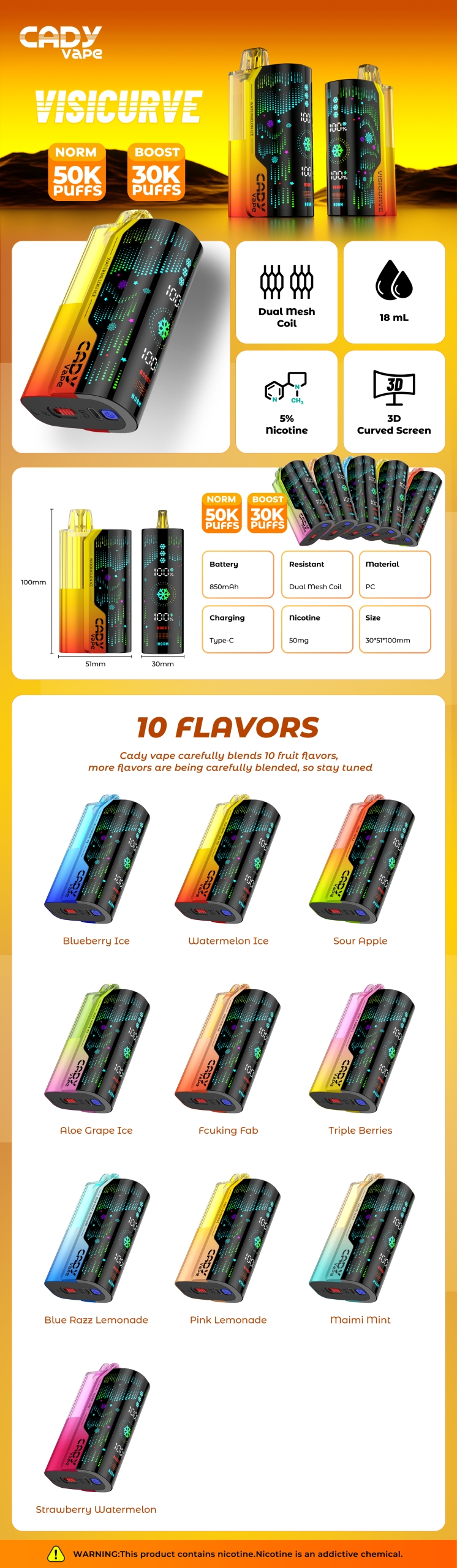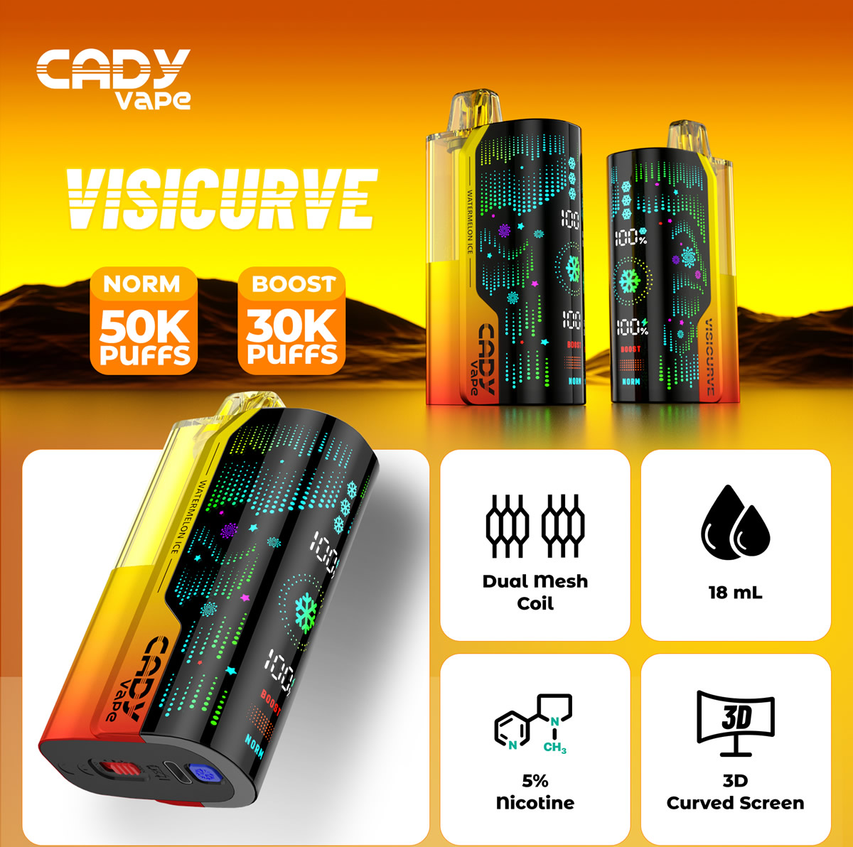 VisicurveInnovative Big Visible E-Liquid + 3D Curved Screen + Ice Control + Norm/Boost Modes disposable vape30ML big clear tank (20ML E-liquid+10ML Ice)3D curved screen with dynamic animationice adjustmentdual mesh coil850mAHrechargeableTurbo 30K puffs /Norm mode 50K puffsType C Send Inquiry Live ChatProduct DetailsInnovative Big Visible E-Liquid + 3D Curved Screen + Ice Control + Norm/Boost Modes disposable vape https://www.cadyvape.com/wp-content/uploads/2025/05/488ddfc8bd07f3a2467229e795bf5b79_raw.mp4 Tags:30ML big clear tank3D Curved Screen3D curved screen with dynamic animationice adjustmentIce ControlShare:FacebookTwitterLinkedInWhatsAppPrev: Love meNext: GEEK BLAST EDITION SKY X 25K PUFFSRelated Products 3-LEVELS POWER CONTROL DTL TOUCH SCREEN 50K DISPOSABLES Send Inquiry GEEK BLAST EDITION SKY 15K PUFFS Send Inquiry GEEK BLAST EDITION SKY X 25K PUFFS Send Inquiry Love me Send Inquiry Shisha Disposables 30K Puffs Send Inquiry MUCHICE 32K PUFFS Send Inquiry 20K PLIFFS Send Inquiry D66M-CADYVAPE Send InquiryHot Products Nova Refillable Pod Kit Send Inquiry Visicurve Send Inquiry Crown Bar 7K Puffs Prefilled Pod Kit Send Inquiry Shisha Disposables 30K Puffs Send Inquiry D66M-CADYVAPE Send Inquiry D83B-CADYVAPE Send Inquiry